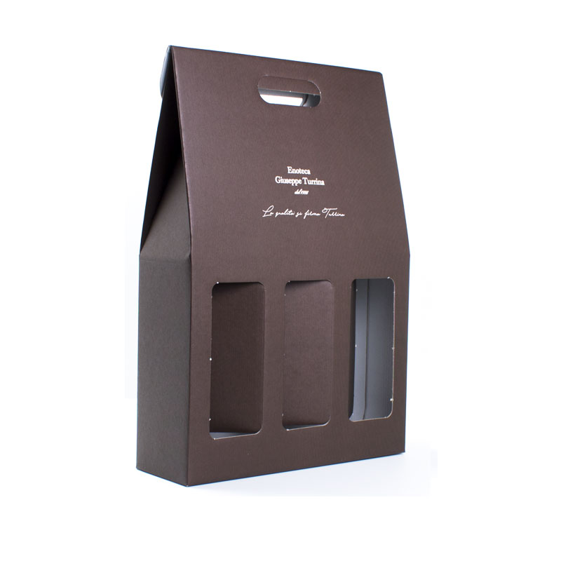 Porta bottiglie avana in cartone con manici in corda 1 bott. 75cl.